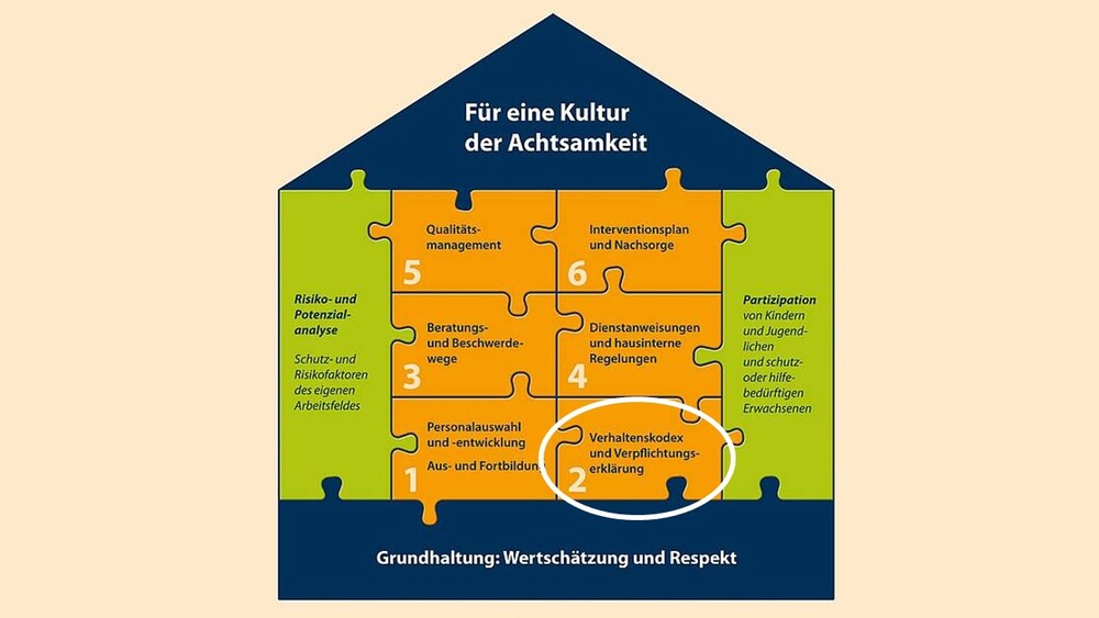 In einem Verhaltenskodex werden die Regeln definiert, die hinsichtlich des professionellen Umgangs mit Nähe und Distanz als verbindlich gelten. Sie verkleinern die Grauzone zwischen normalem und grenzüberschreitendem Verhalten und erleichtern es Betroffenen und Dritten, Grenzverletzungen zu benennen, sich Hilfe zu holen und somit auch Gewalt und Missbrauch von Macht Einhalt zu gebieten. Gleichzeitig gibt er allen Sicherheit und Orientierung in sensiblen Situationen und kann so auch vor falschem Verdacht schützen.