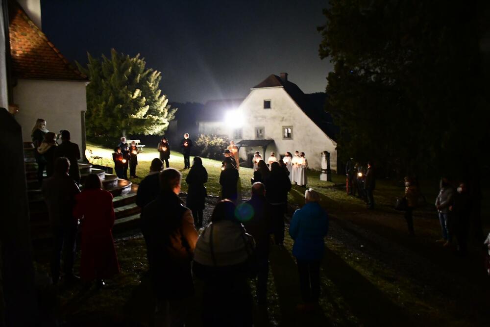 Man musste sich anmelden. Sie begann schon um 19 Uhr. Alle saßen mit Mundschutz in der Kirche. Prof. Helmut Schlacher las das Lukas Evangelium in steirischer Mundart, gedichtet von U. Reiter, vor. Singen durfte man nicht. Julia Sammer und ihre Schwester gestalteten die Mette musikalisch. Sie brachten weihnachtliche Stimmung in die Kirche, dafür waren wir sehr dankbar.