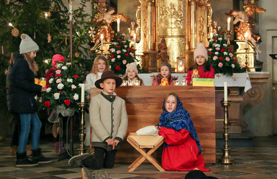 „Alle Jahre wieder…“ spielen die Kinder der 4. und 3. Klasse Volksschule das Krippenspiel als Einstimmung auf die Feier des Heiligen Abends.