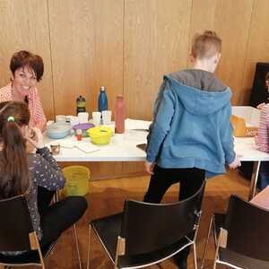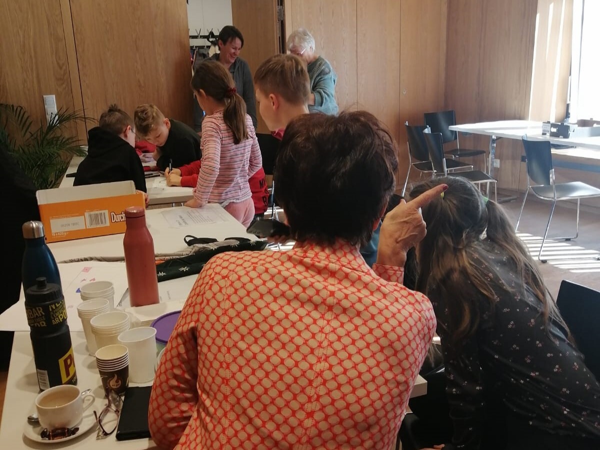 Das Leben und Getummel im Pfarrsaal Gamlitz lockte auch einige Be­su­cher/­innen der äl­ter­en Ge­ner­a­tion an, die gerne auf einen Kaf­fee blie­ben und die leb­haf­te und lo­cke­re At­mos­phäre ge­nos­sen.