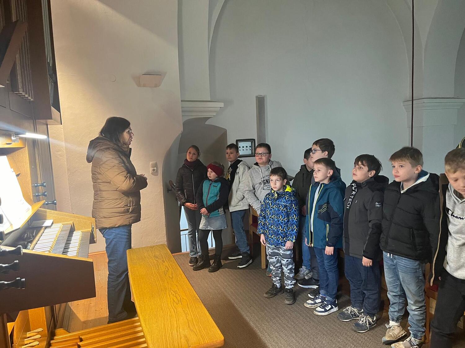So durften die Kinder bewusst den Klängen der Orgel lauschen und selbst ausprobieren, wie es sich anfühlt, auf dem Instrument zu spielen. Was in der Sonntagsmesse ansonsten von den Kindern nur hörbar ist, durfte direkt am Chorraum der Kirche entdeckt werden. Danke für diese Erfahrung und vielleicht wird ja dadurch die Neugierde geweckt, dieses Instrument spielen zu lernen.
