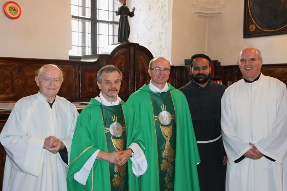 v.l.n.r.: P. Valentin Solomon OFMConv., P. Clemens Breineder OFMConv., P. Petru Farcaș OFMConv., P. Joel Koyikkara OFMConv.