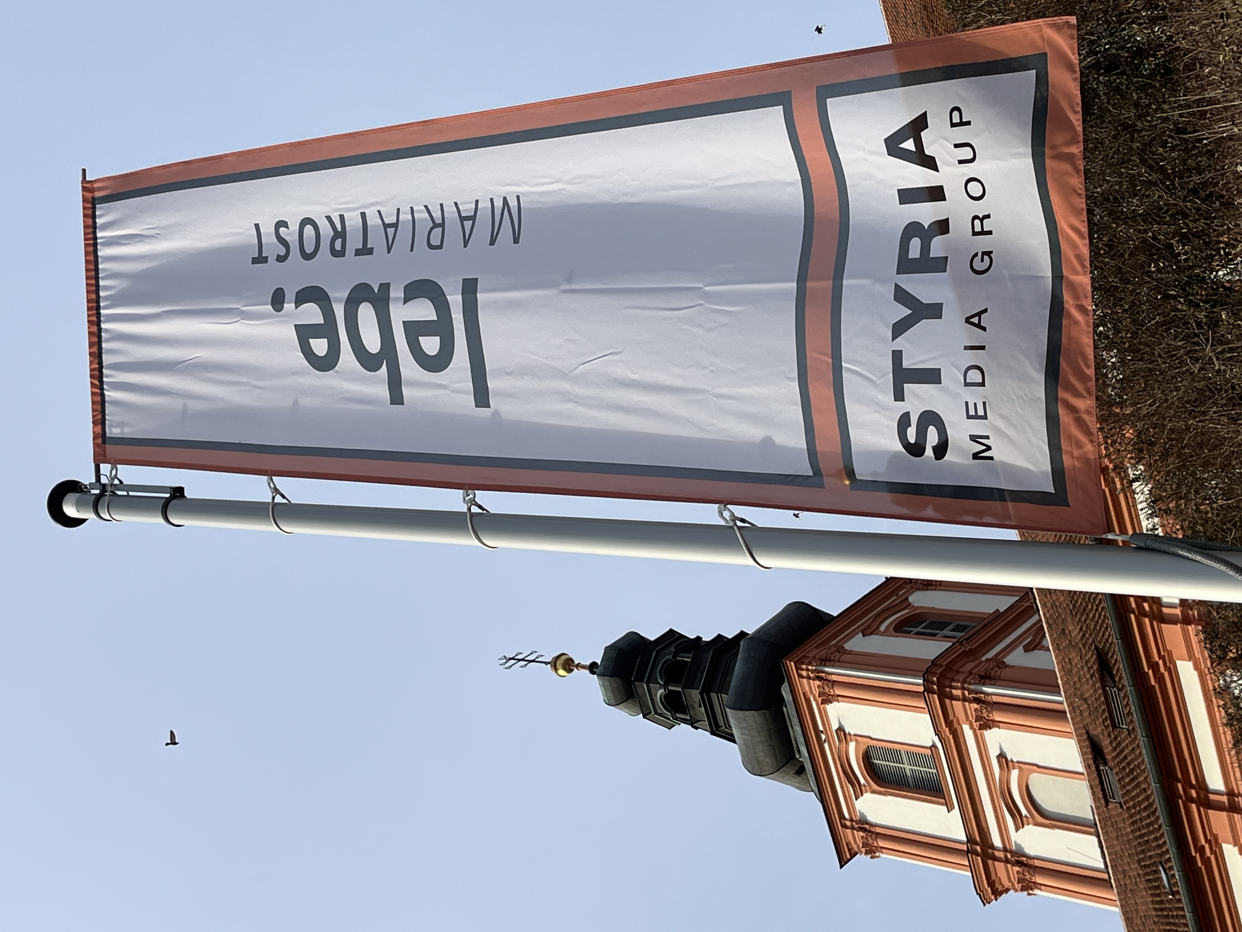 15 Unternehmen und Institutionen helfen – optisch fein sichtbar gemacht durch 18 Fahnen – mit, auf die Tiefenwirkungen von MARIATROST aufmerksam zu machen: 4 THEMEN-Fahnen stimmen die Besuchenden auf das Kirchenjahr ein und 14 SPONSORING-Fahnen signalisieren die verlässliche Projektbegleitung durch die Sponsoren.