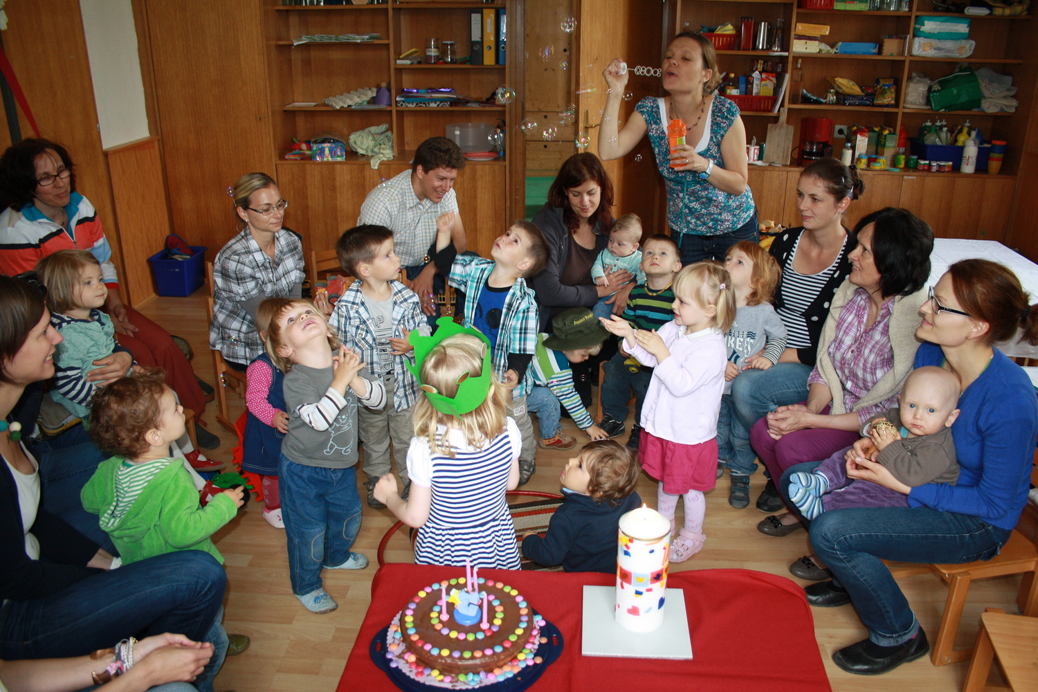 Einmal pro Woche treffen sich Mütter und Väter, aber auch Großmütter und Tanten mit ihren Kleinkindern, um gemeinsam zu spielen, zu singen und die Feste im Jahreskreis sowie die Geburtstage der Kinder zu feiern.