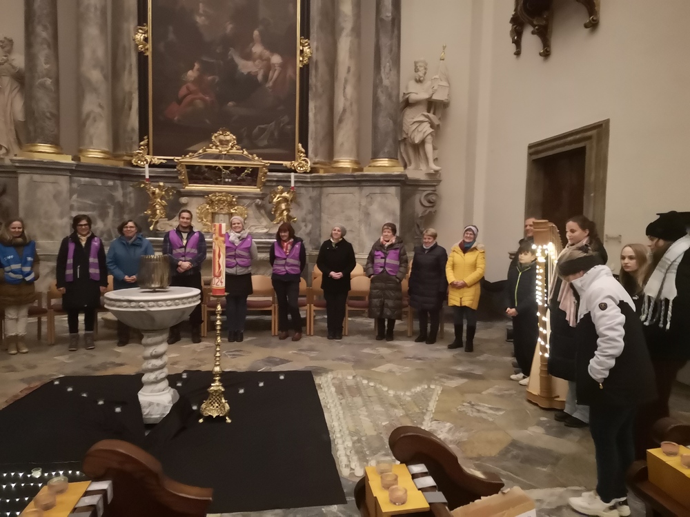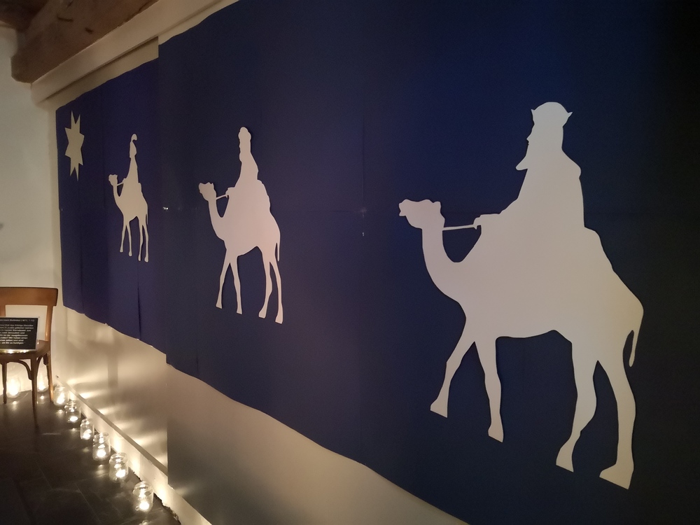 Viele, aus Kerzenlichtern gestellte Figuren konnten bestaunt werden: ein Engel, ein Kelch, ein buntes Kirchenfenster, Sterne in allen Varianten, ein schön beleuchteter Altarraum mit einem Engel und der Engel des Herrn in verschiedenen Sprachen, ein Sternenhimmel und vieles mehr. Als Besucher konnte man sich auch aktiv beschäftigen – einen Leuchtstein in den Himmel legen und ein Sterngedicht mit nach Hause nehmen.