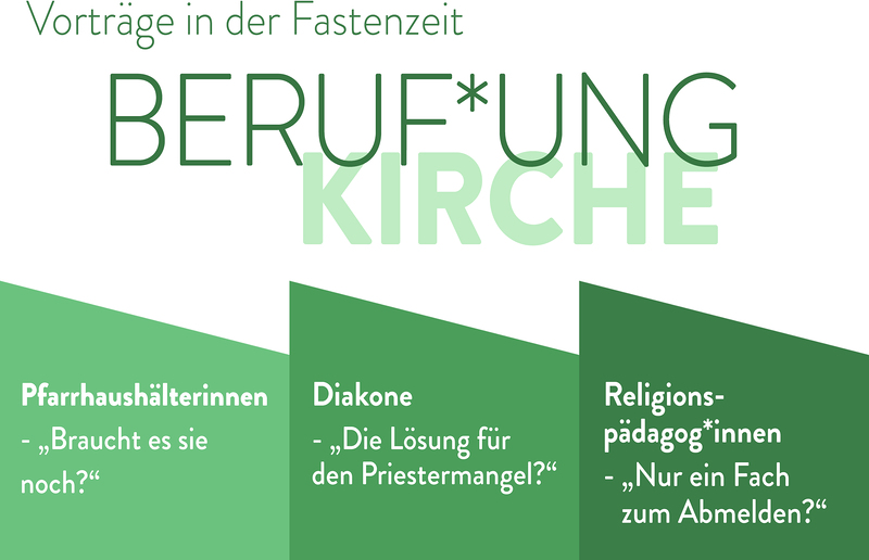 Die Kirche gehört weltweit zu den größten Arbeitgeberinnen. Haupt- und ehrenamtliche Mitarbeiter*innen sorgen dafür, dass Glaube gelebt und kirchliche Organisationen wirtschaftlich geführt werden können. In der Reihe „Vorträge in der Fastenzeit“ wollen wir sehr wichtige Berufe neben den bekannten Hauptamtlichen in den Fokus stellen: Pfarrhaushälterinnen, Diakone und Religionspädagog*innen.
