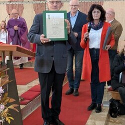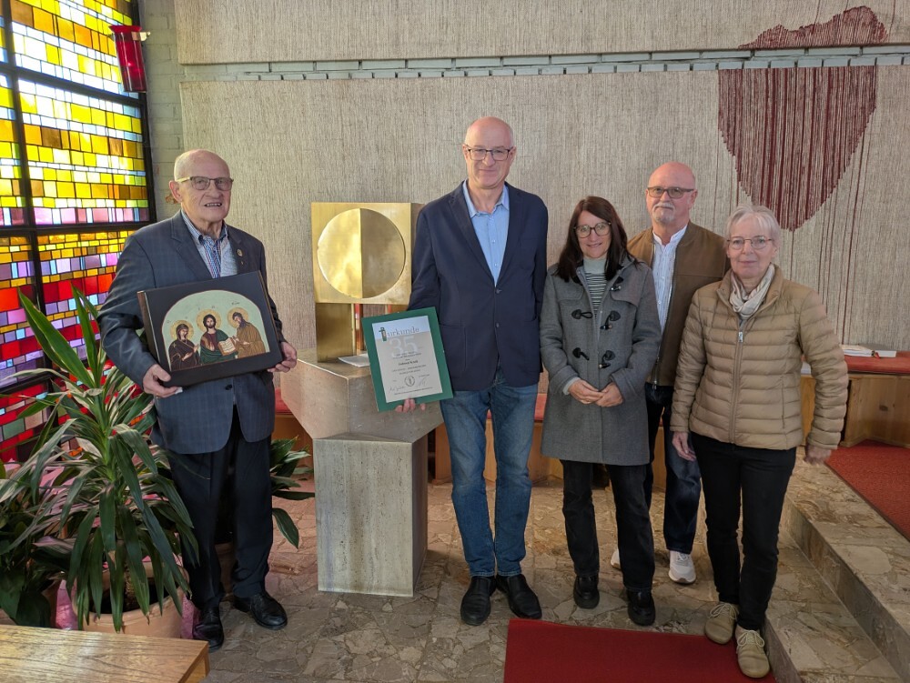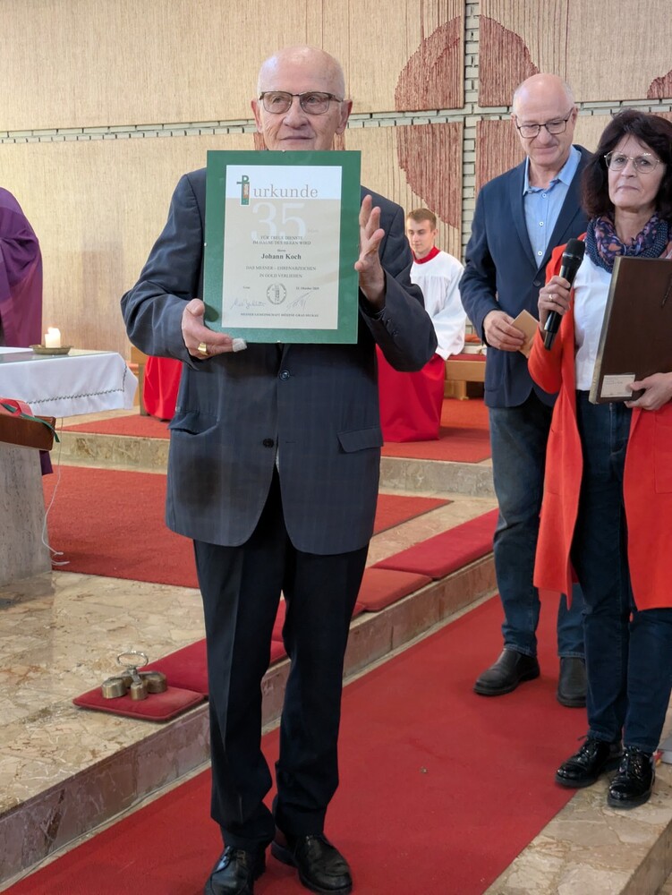 Hans Koch wurde nach dem Allerseelengottesdienst am 2.11. die goldene Ehrennadel der Mesnergemeinschaft überreicht. Unglaubliche 60 Jahre lang, auf den Tag genau, hat er diesen wertvollen Dienst in der Pfarre Lieboch geleistet. 50 Jahre lang alleine, seit 10 Jahren gibt es ein
