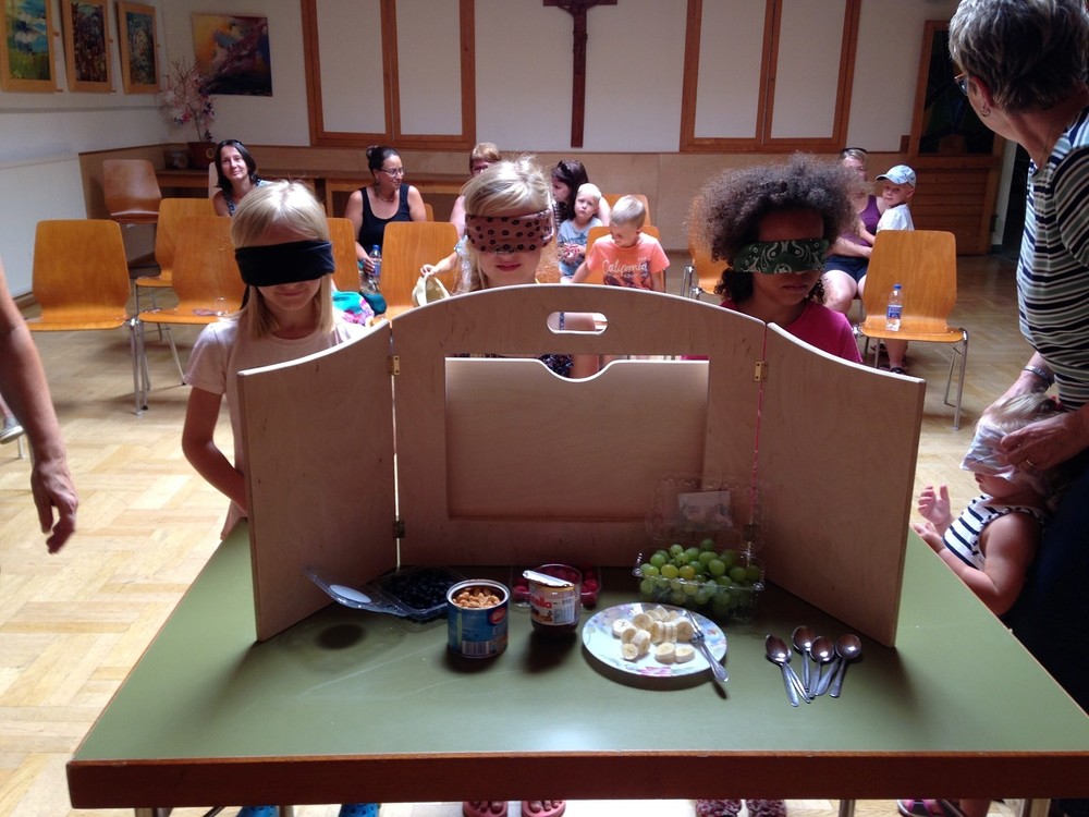 Vorlesen - Bilderbuchkino - Kamishibai und am Schluss noch eine Blindverkostung - trotz der hochsommerlichen Temperaturen hatten die Kinder großen Spass bei unserer kleinen, aber feinen Veranstaltung.