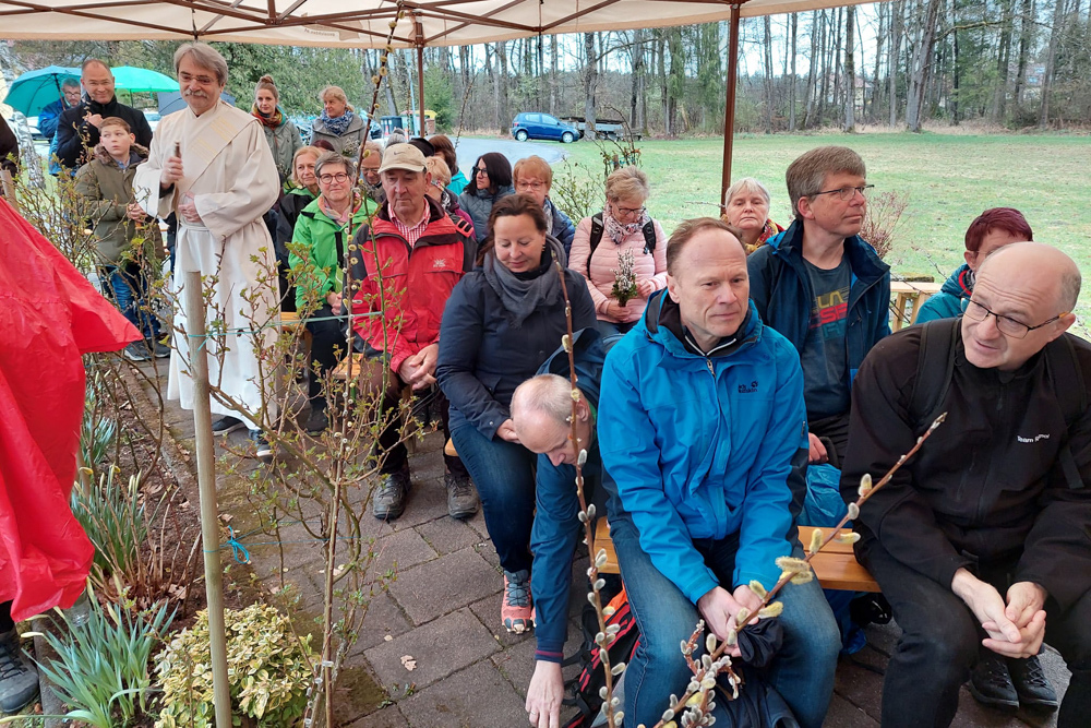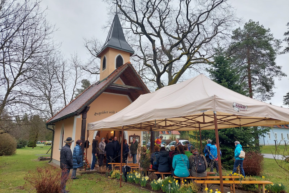 Am Palmsamstag, dem 9. April 2022, fand die erste Sternwallfahrt des Seelsorgeraumes Kaiserwald statt. Ziel war die Kaiserwaldkapelle in der Pfarre Premstätten. Trotz ziemlichen Regens haben sich mehr als 60 Wallfahrerinnen und Wallfahrer eingefunden und bei der Wort-Gottes-Feier ihre Palmbuschen segnen lassen. Bei einer Agape konnten sich die Teilnehmerinnen und Teilnehmer austauschen und haben dann noch gesegnetes Salz für die Osterspeisen mit nach Hause genommen.