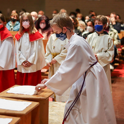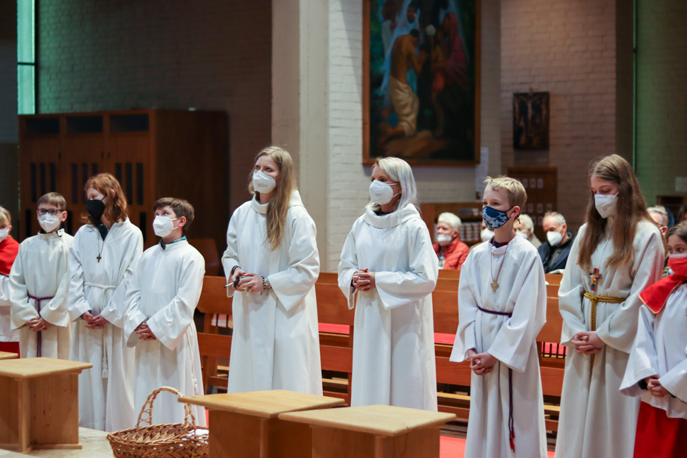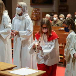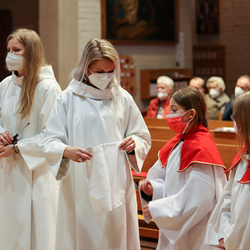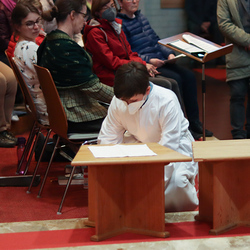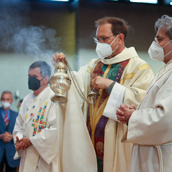 In einer etwas anders gestalteten Fußwaschung wurde jenen gedacht, die nicht oder nicht mehr am Leben der Kirche teilnehmen können oder möchten. Die Stühle blieben leer. Symbolisch für Rand- und Zielgruppen und jene Menschen, die unsere Gesellschaft mitprägen, wurden Kerzen entzündet. Als Zelebranten fungierten unsere drei Priester, drei Diakone sowie alle Pastoralreferentinnen und Referenten, welche den Sendungsauftrag im Seelsorgeraum Kaiserwald erfüllen.