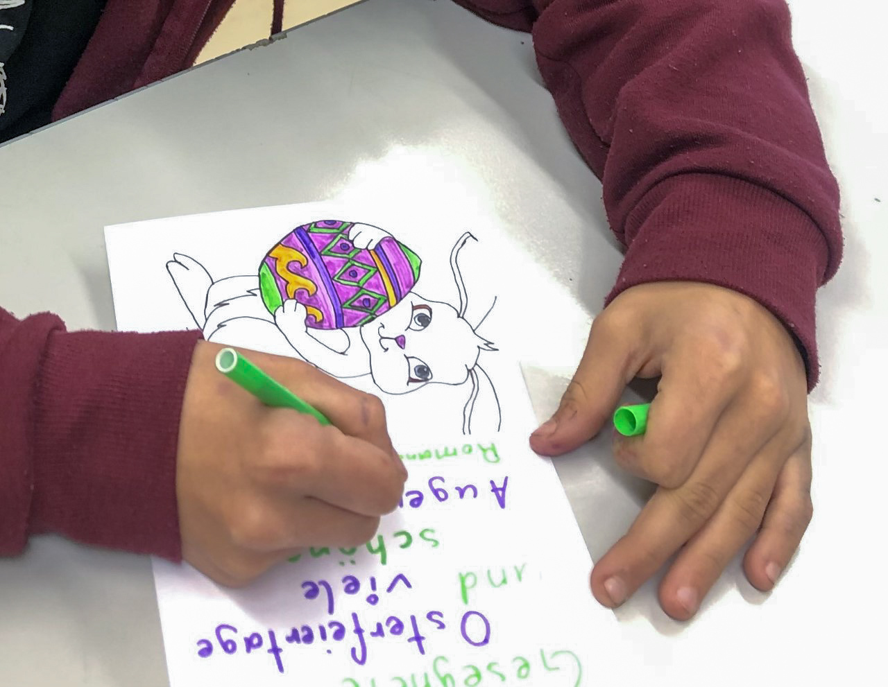 Anja Asel, die auch Lehrerin an der Priv.-MS Ursulinen ist und Ines Kvar, die selbst auch als Krankenhausseelsorgerin im LKH-Univ.-Klinikum in Graz tätig ist, nahmen Kontakt mit den Schulen auf und koordinierten die Gestaltung der Osterkarten.
